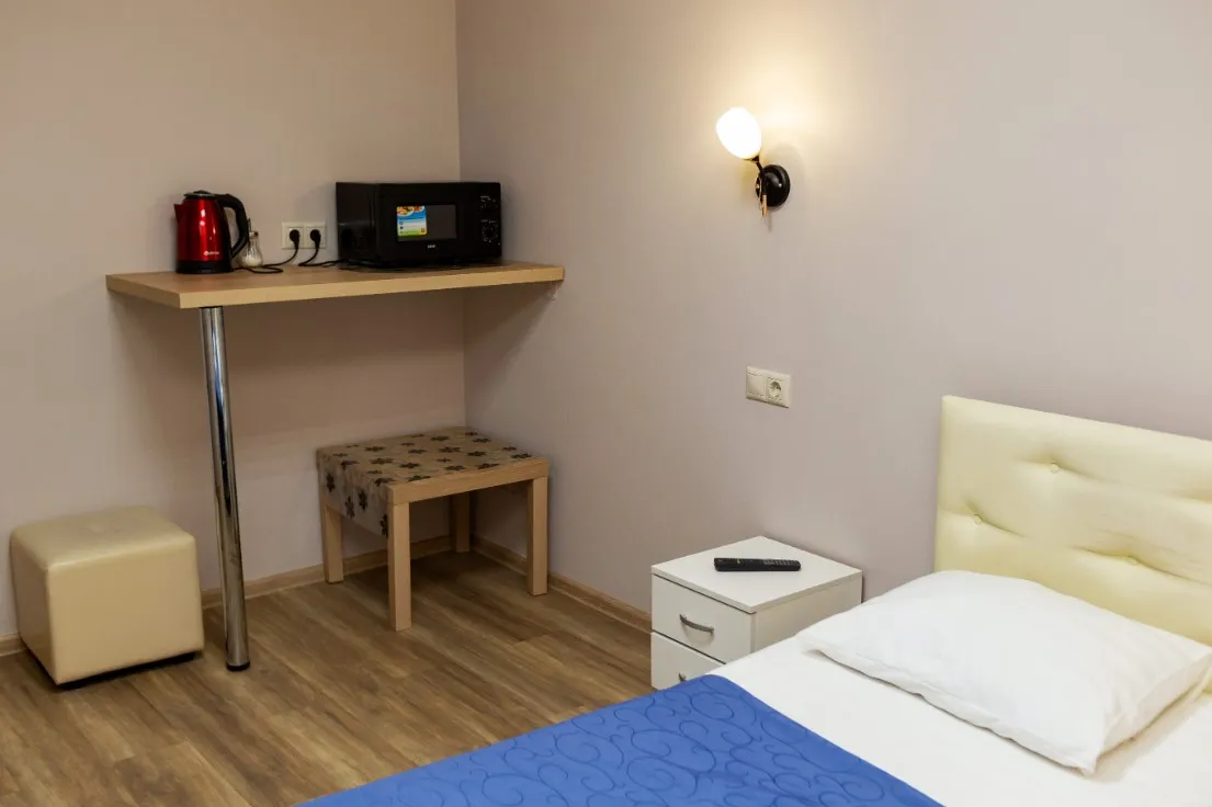 Уютный номер категории стандарт, номер оборудован необходимой комфортной мебелью.