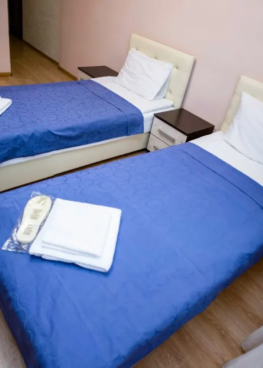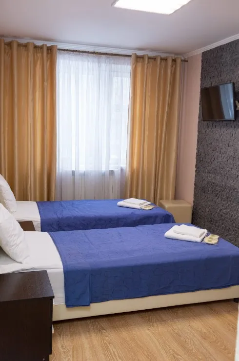 В номере имеется: две раздельные кровати , душ, санузел, постельное бельё, полотенца, средства личной гигиены, Wi-Fi, бесплатная парковка.