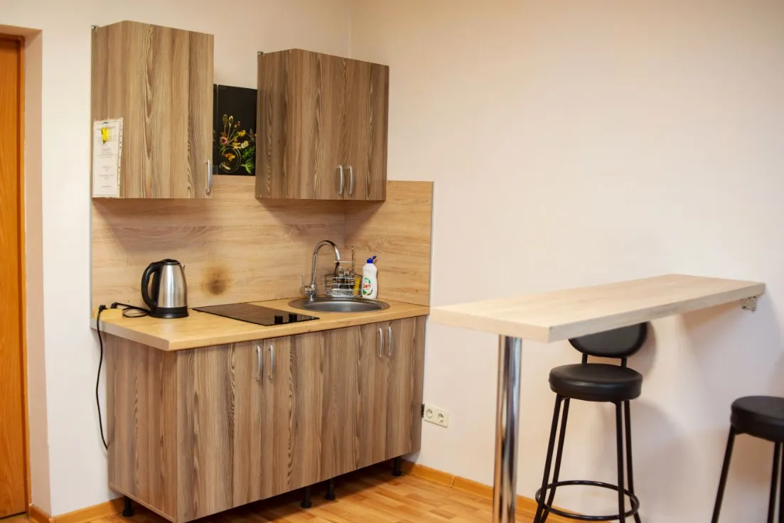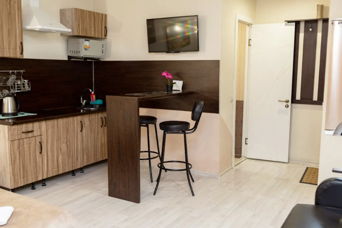Апартаменты комфорт с двухспальной кроватью и личной кухней: