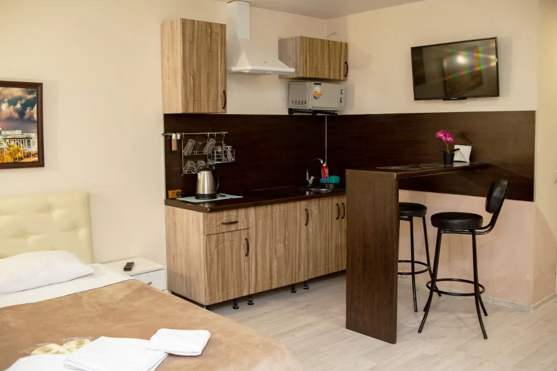 Уютные апартаменты, полностью оборудованы комфортной мебелью, собственной мини кухней.