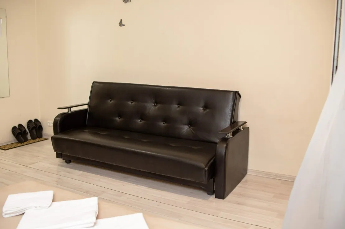 В номере имеется: двуспальная кровать, душ, санузел, постельное бельё, полотенца, средства личной гигиены, Wi-Fi, бесплатная парковка, дополнительный диван.
