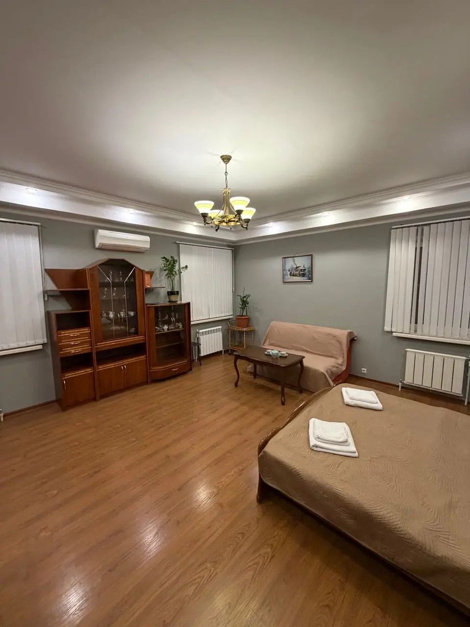В номере: двухспальная кровать, угловой диван, прикроватная тумба, стол, стул, телевизор, косметика для душа, полотенца, тапочки, WI-FI, кондиционер, душ, санузел.