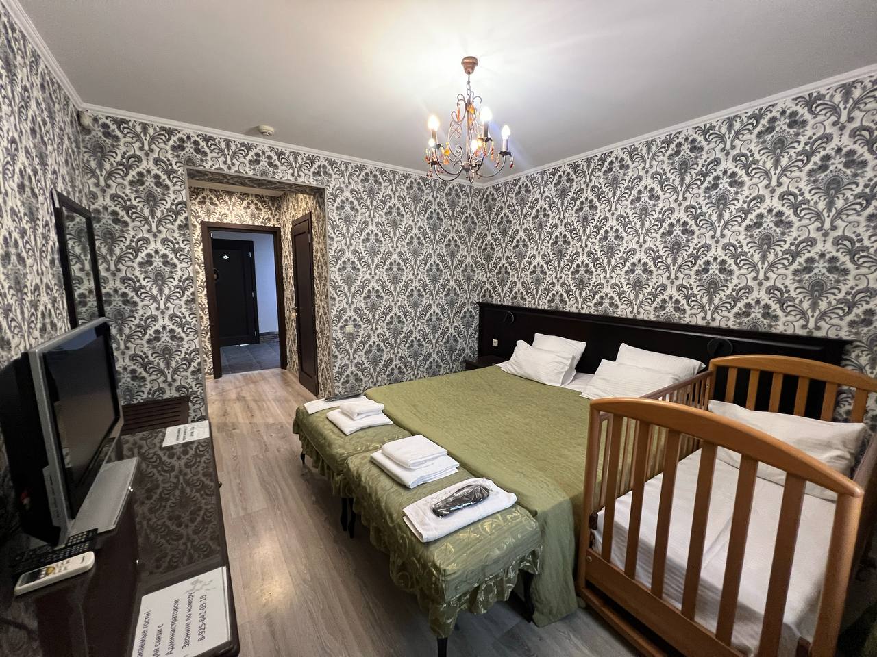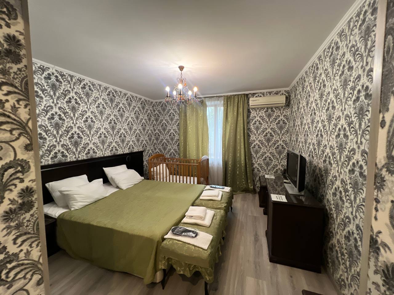 В номере: Двухспальная кровать, детская кроватка, кондиционер, фен, рабочая зона, шкаф-купе, средства личной гигиены, тапочки, халаты, телевизор, одеяла, бесплатный wi fi. , чайник, стаканчики, бесплатное парковочное место.