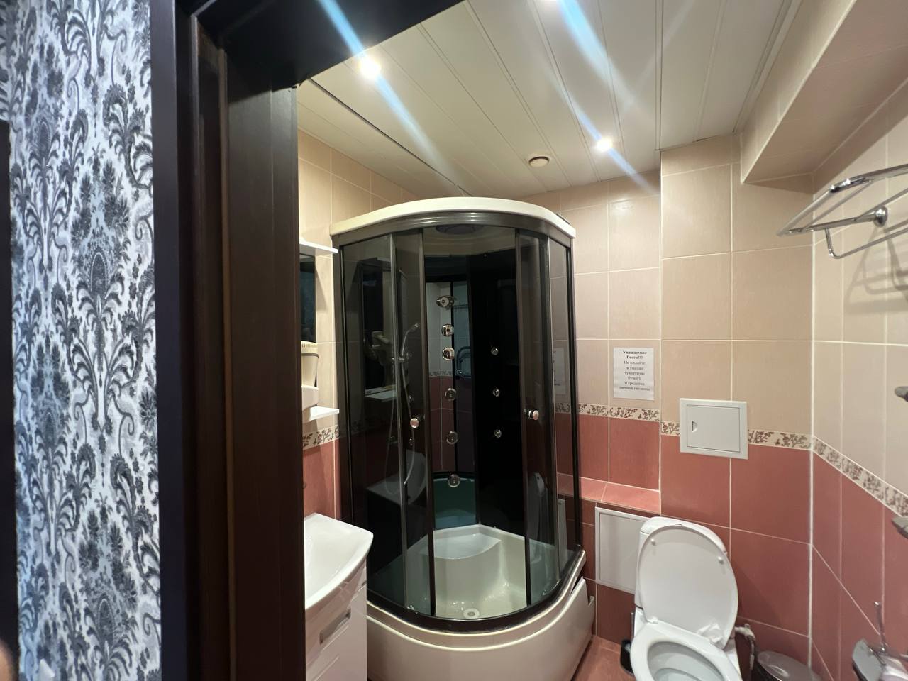 Комфортабельный уютный номер с большой двуспальной кроватью, собственным санузлом с душевой кабиной.