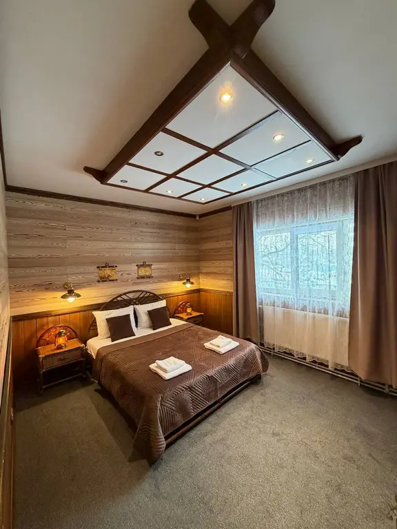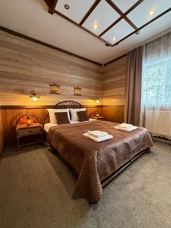 Комфортабельный уютный номер с большой двуспальной кроватью, собственным санузлом с душевой кабиной.